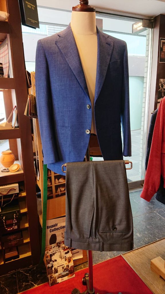 古いションヘル織機で、ゆっくり空気を含ませながら丁寧に織られたスーツ服地で、打ち込みのしっかりとした質実剛健な素材でパンツにはおすすめしたいです。