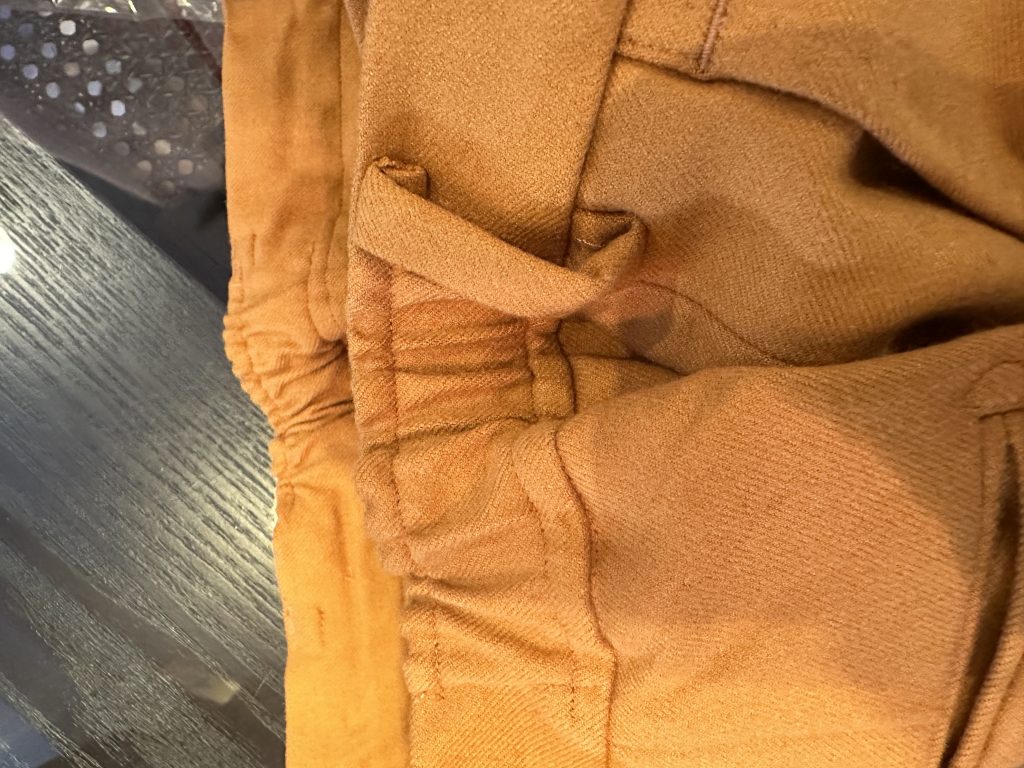オーダー時に、パンツの裏地を表裏とも裾まで付けさせて頂きました
