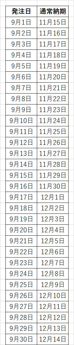 以下、納期カレンダー