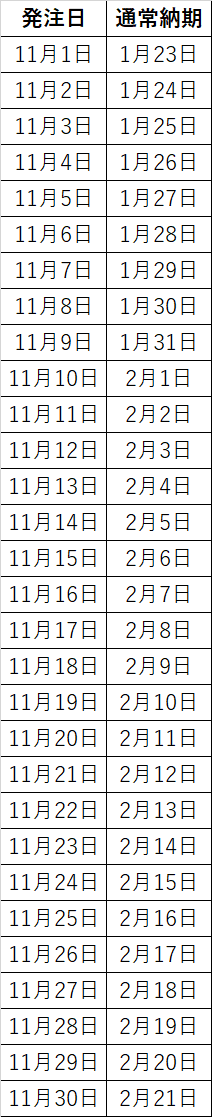 11月納期カレンダー